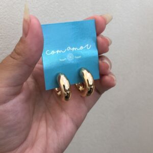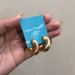 Avaliação 0 de 5R$98,00argola meia lua com formato orgânico, folheada a ouro 18k e hipoalergênica.