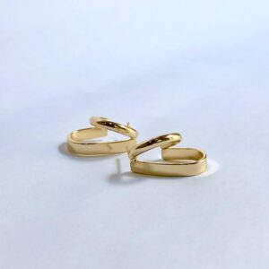 Avaliação 0 de 5R$89,00argola de fio duplo sendo um oval com acabamento retangular e outro sendo tubo médio, folheada a ouro 18K e hipoalergênica.