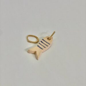 Avaliação 0 de 5R$72,00brincão feito à mão em metal envernizado com pedras naturais (jade melancia) e detalhes folheados à ouro 18k