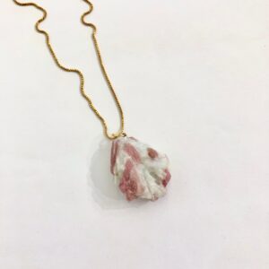 Avaliação 0 de 5R$78,00colar de corrente veneziana folheada à ouro com pingente de pedra natural bruta (turmalina rosa).