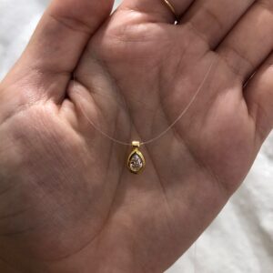 colar medindo 45cm, pingente de ponto de luz medindo 5mm de diâmetro. -