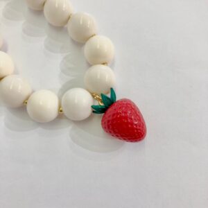 colar em contas brancas com entremeios de esfera folheada à ouro e pingente de fruta esmaltada.colar completo medindo 40cm + 3,5cm de extensor.