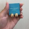 argola trabalhada em fios horizontais, folheada a ouro 18k e hipoalergênica.