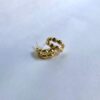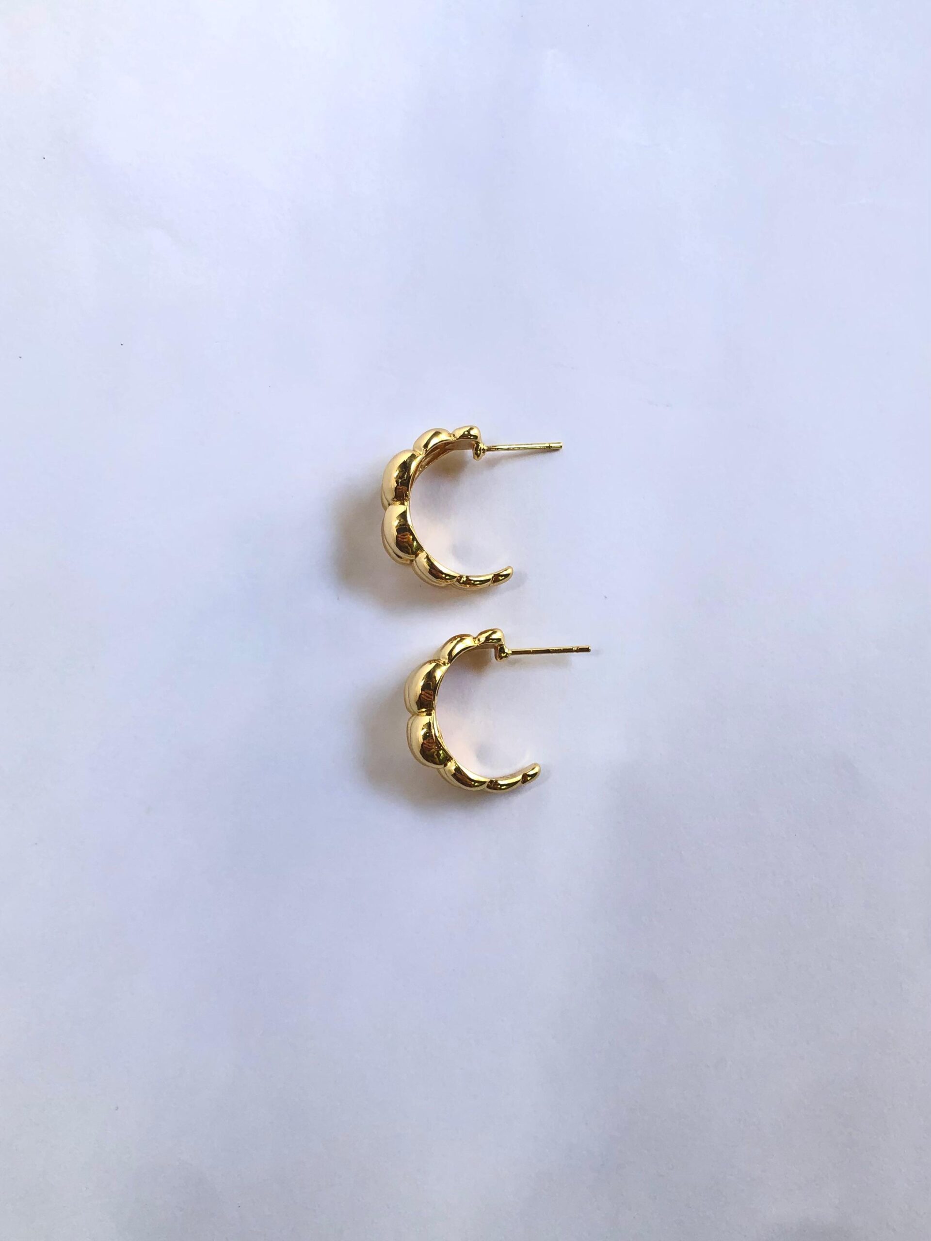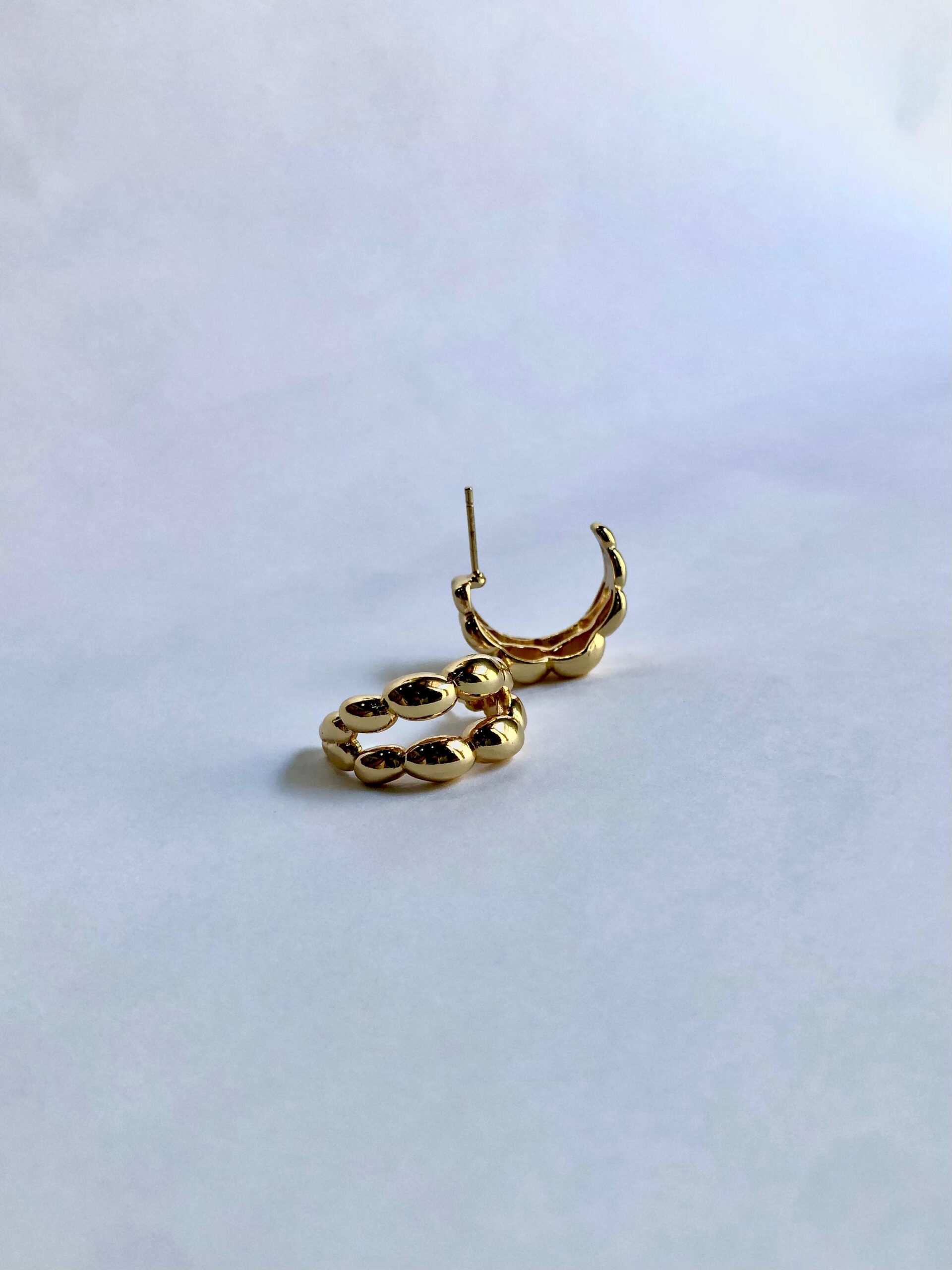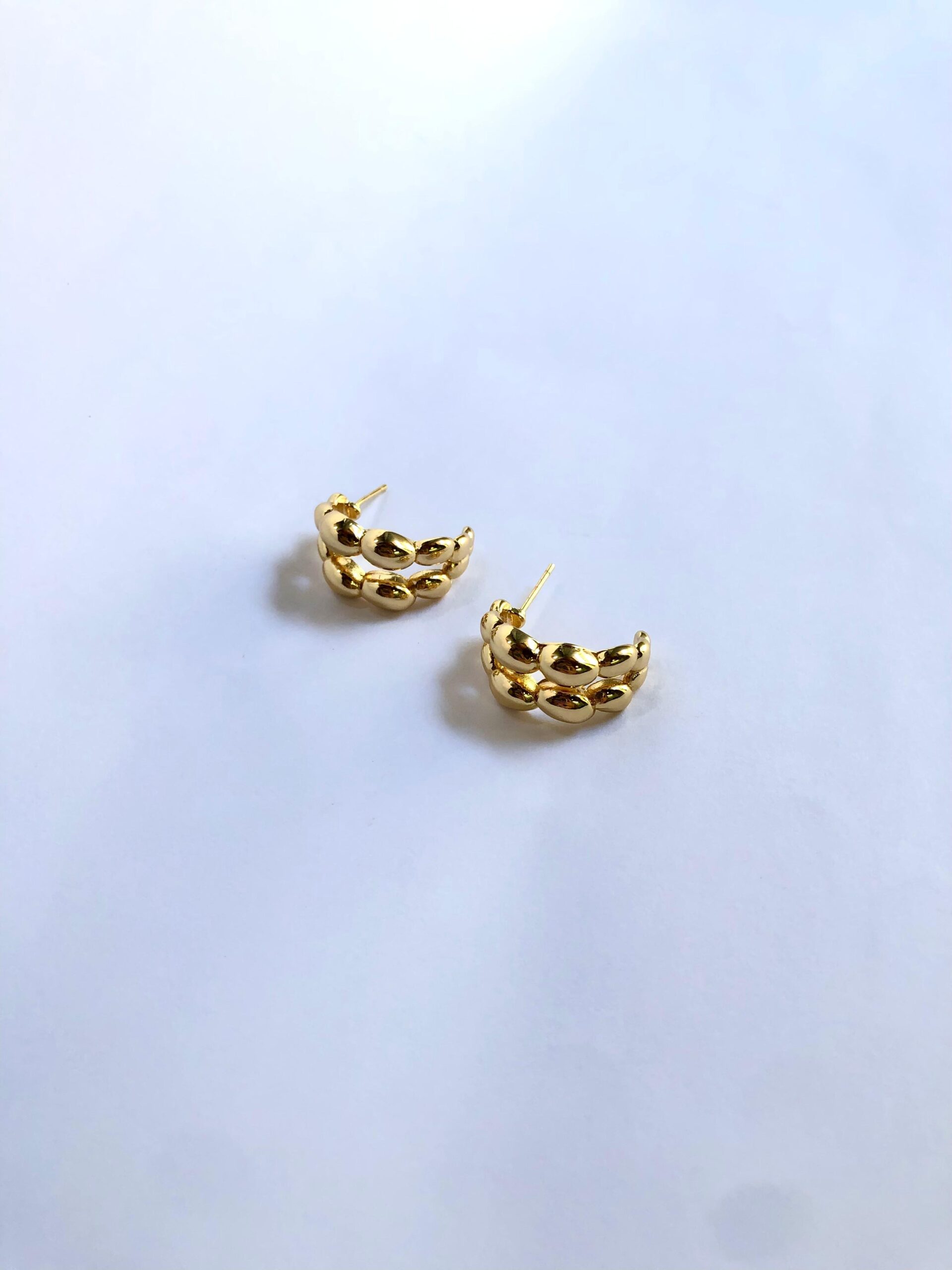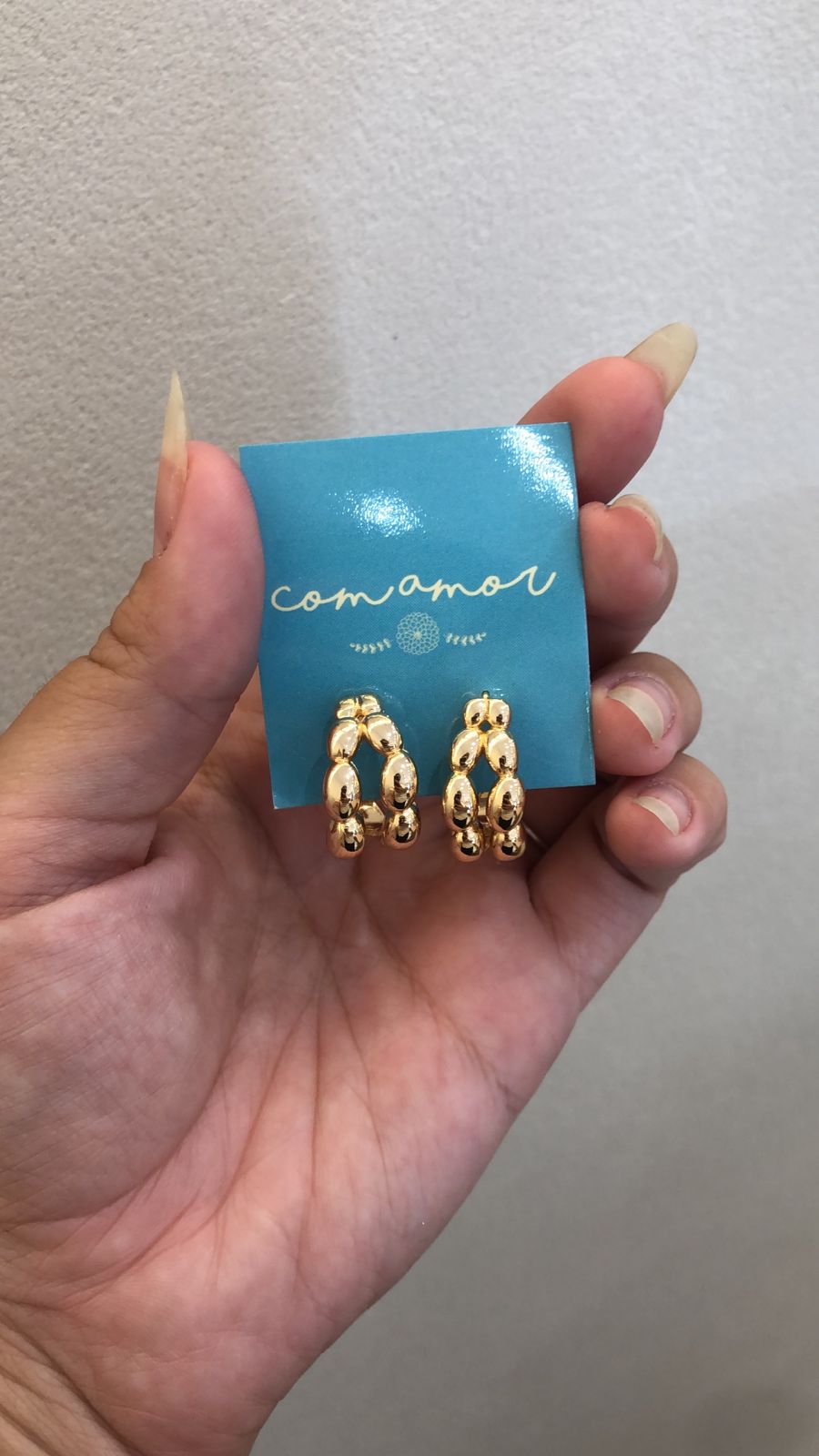 argola de fio duplo, trabalhada em formato de meias cápsulas ovais. folheada a ouro 18k é hipoalergênica.
