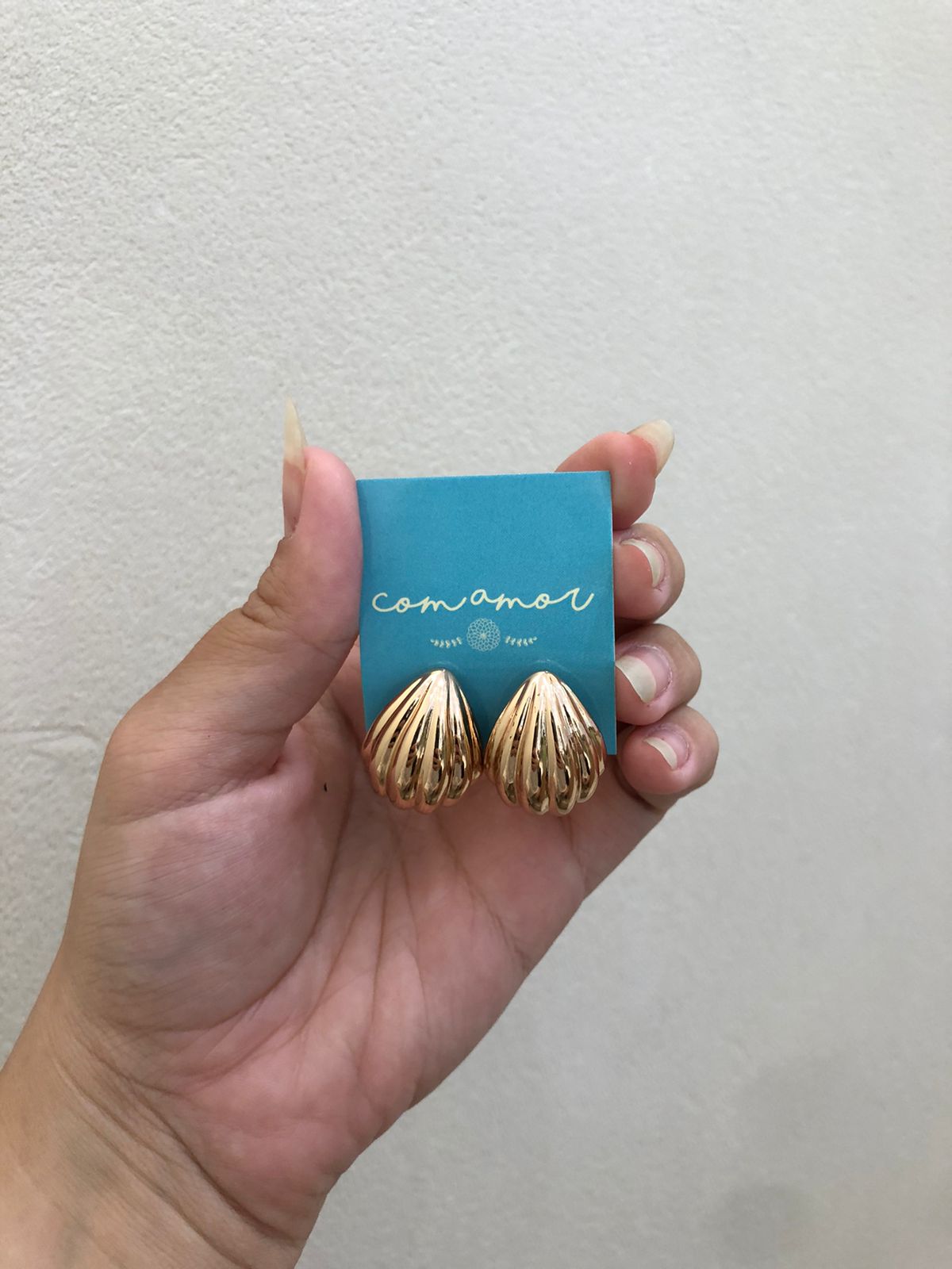 brinco em formato de gota trabalhada. folheada à ouro 18k e hipoalergênica.