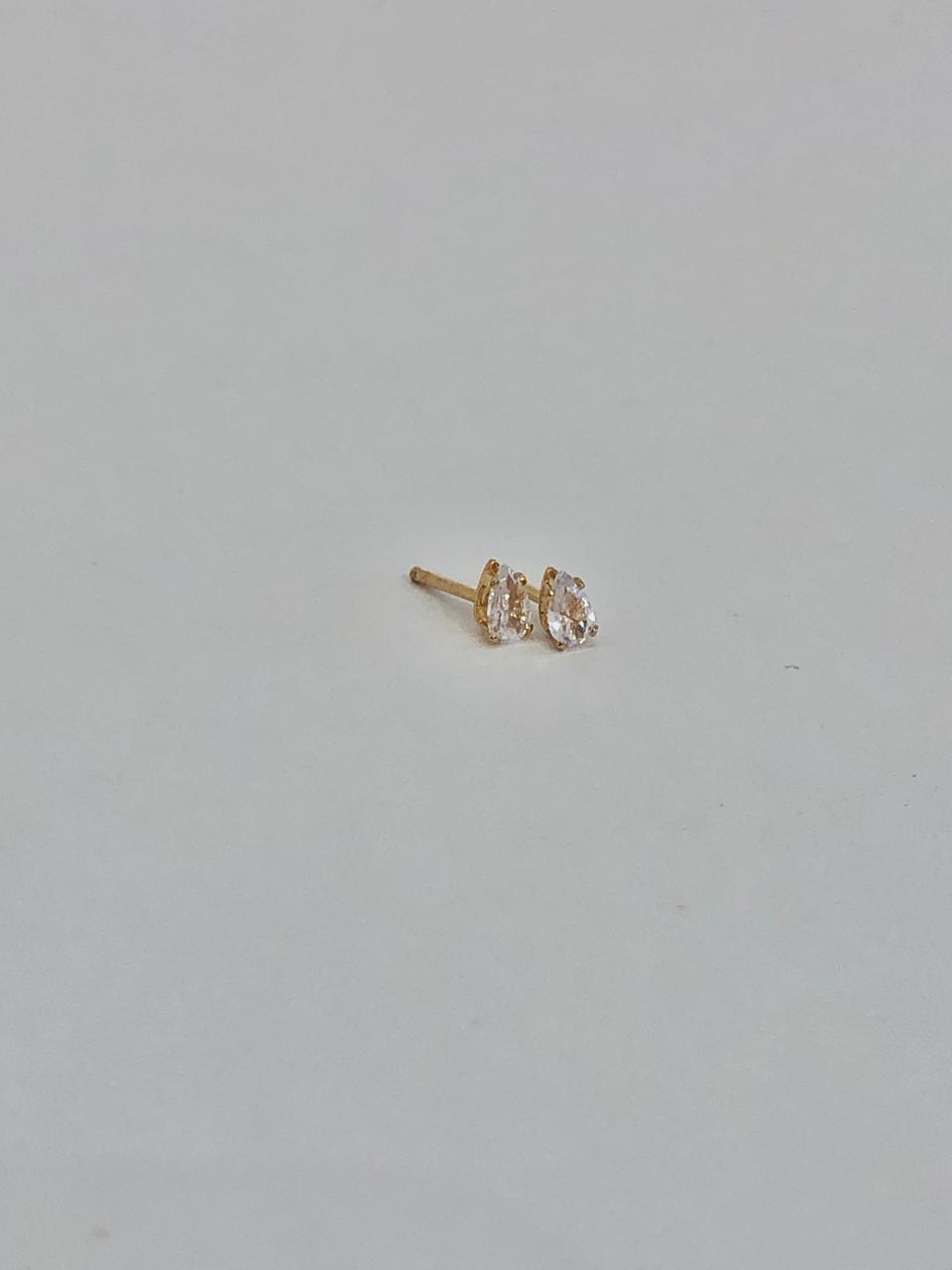 brinco folheado à ouro com zircônia em formato de gota. medindo 4mm de altura e 3mm de largura.
