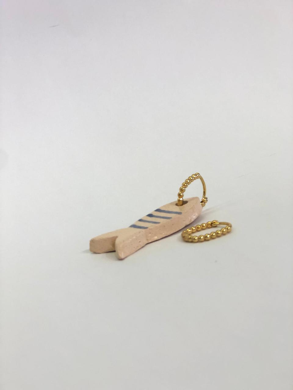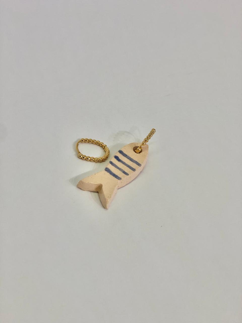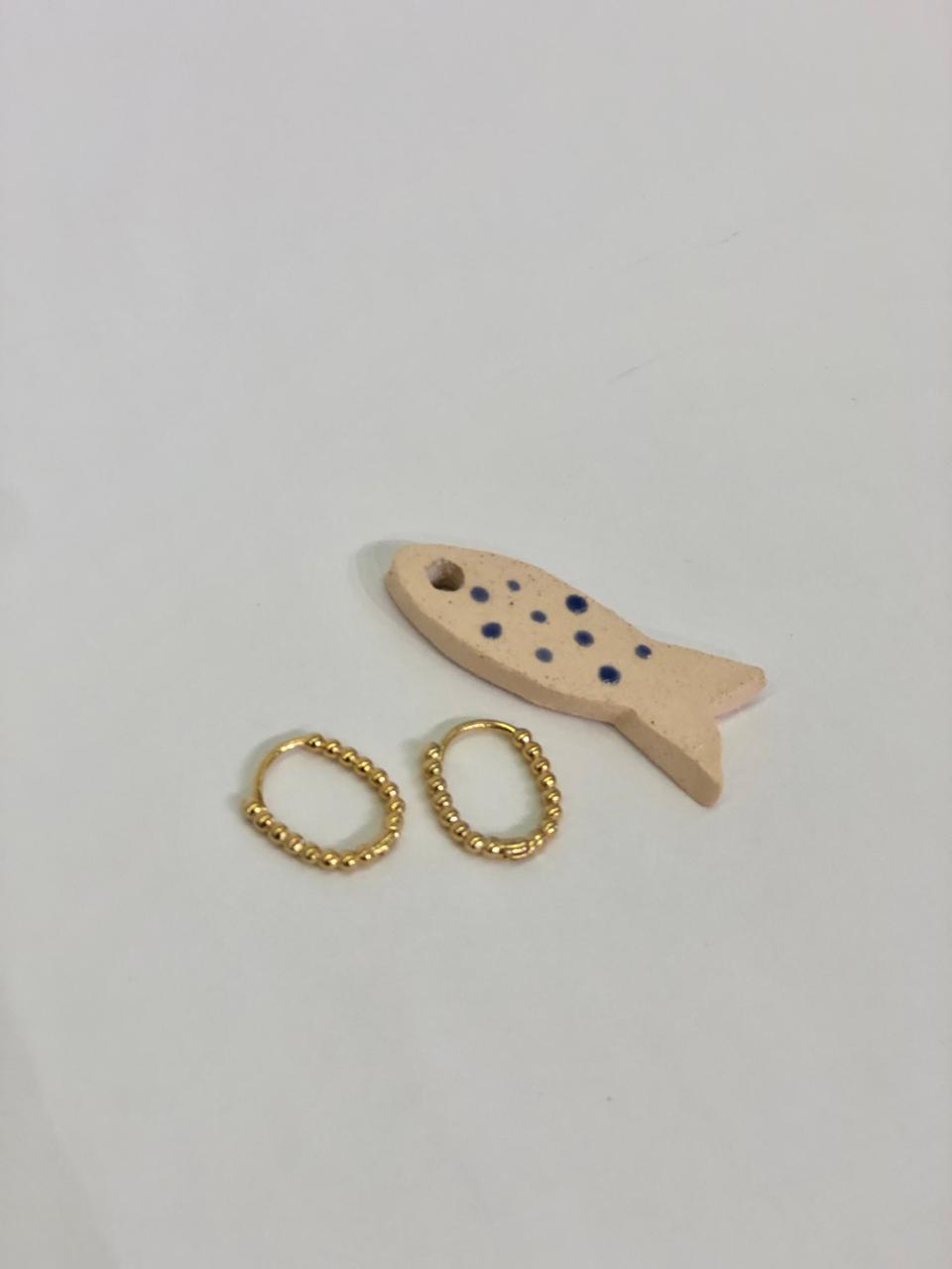 par assimétrico, com argola de bolinhas folheada a ouro 18k e hipoalergênico e pingente de cerâmica.