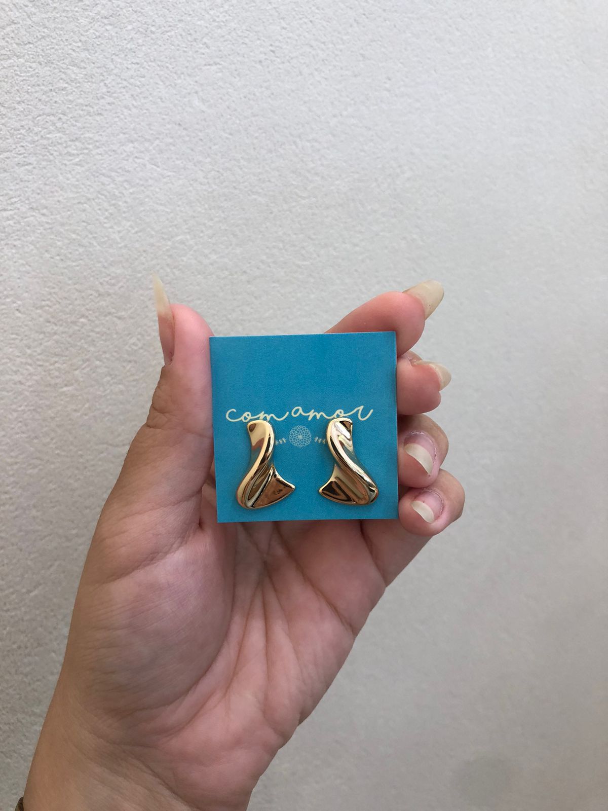 brinco agarradinho com desenho fluido como um véu, trazendo leveza e elegância. folheado a ouro 18k é hipoalergênico.