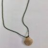 corrente em fio transado medindo 55cm + 3,5 de extensor acabamentos em metal envernizado com verniz italiano e no pingente acabamentos folheados a ouro .