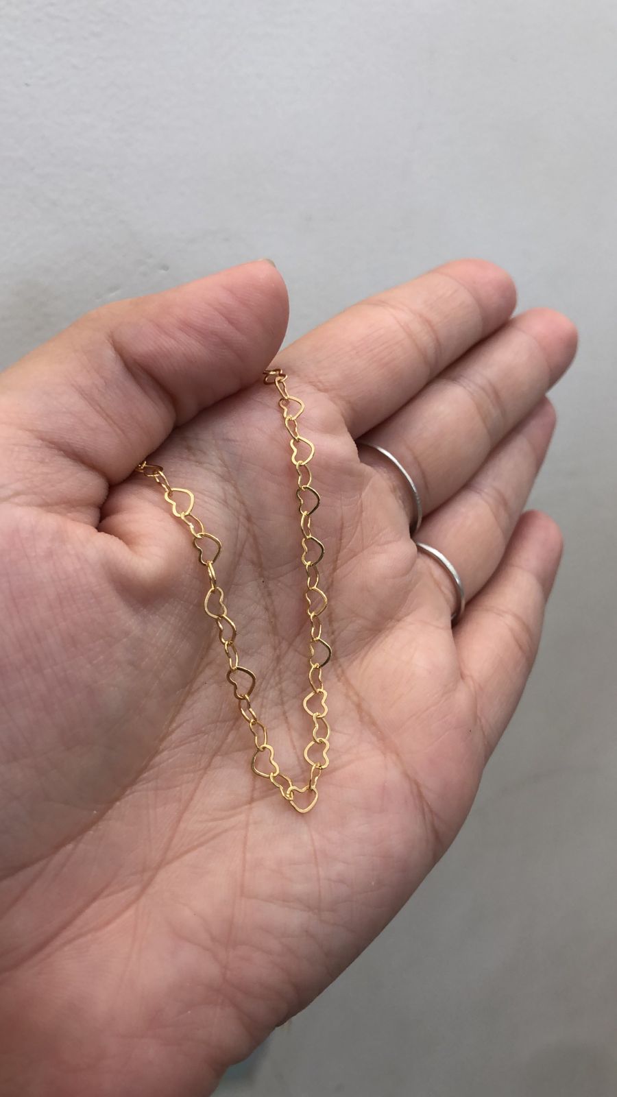 colar corrente elos de coração folheado à ouro. medindo 48cm.