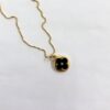 colar de corrente veneziana folheada a ouro com pingente medalha em metal com banho de verniz italiano e estampa de trevo esmaltado em preto.