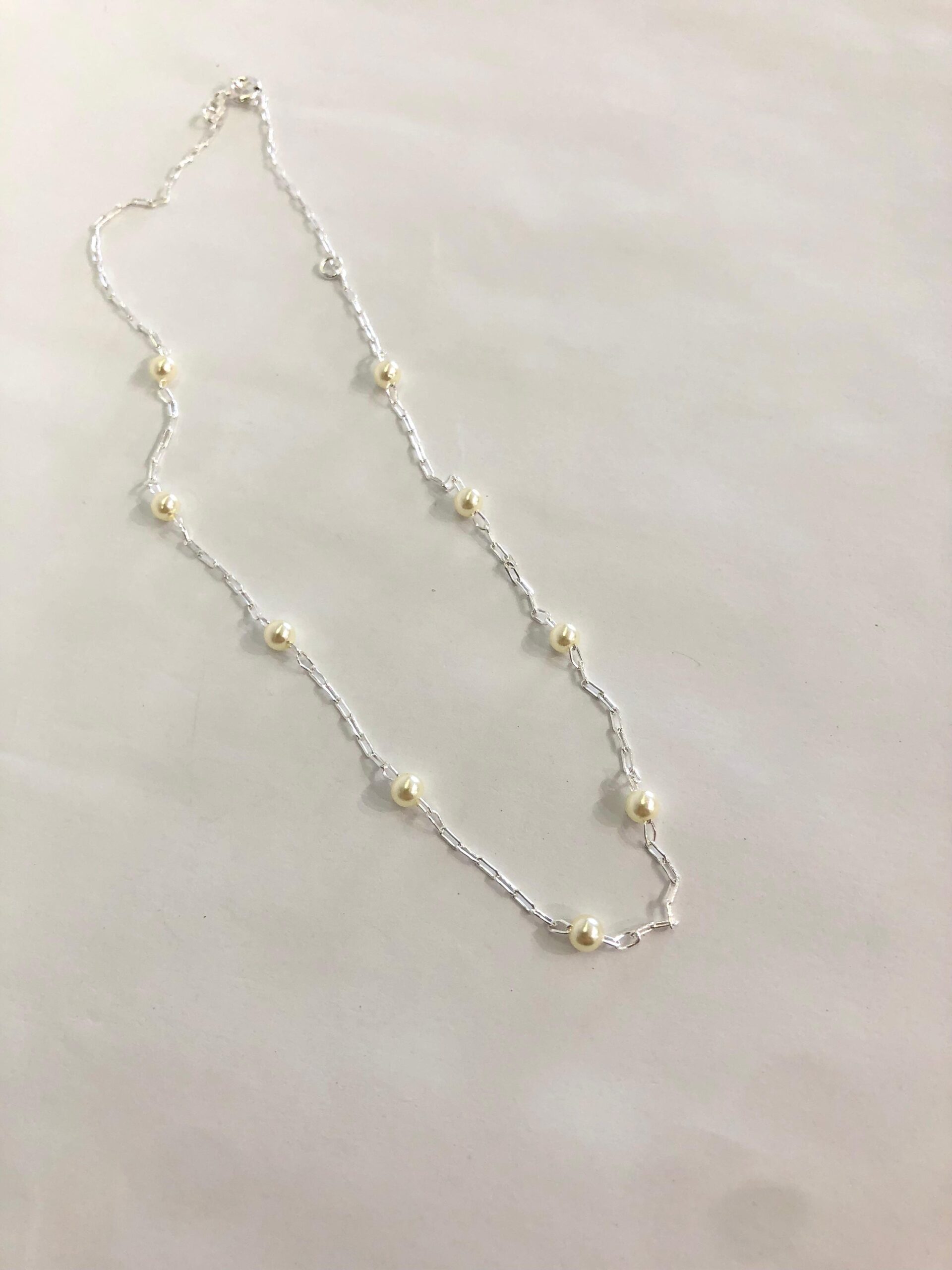 colar prata 925 com corrente cartier e entremeios de pérolas redondas.
